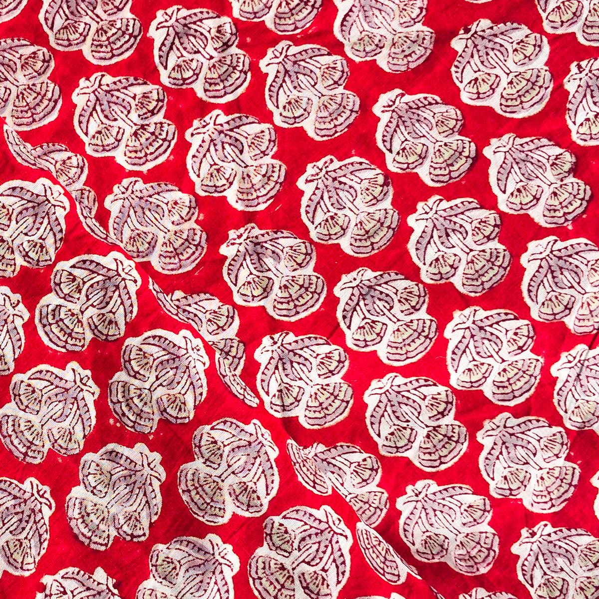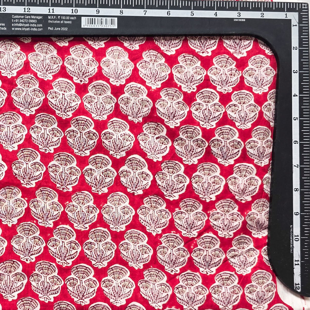 Pure Cotton Jaipuri Red With Flower Motif Hand Block Print Fabric